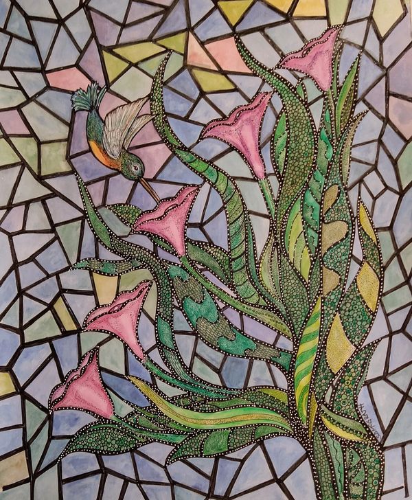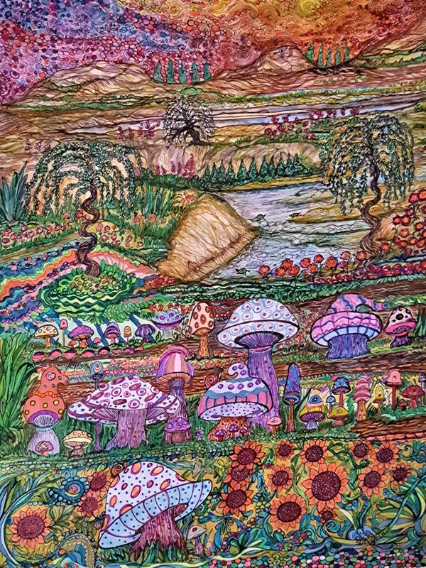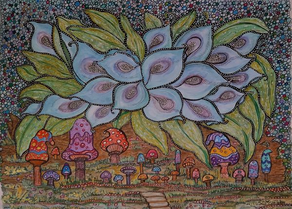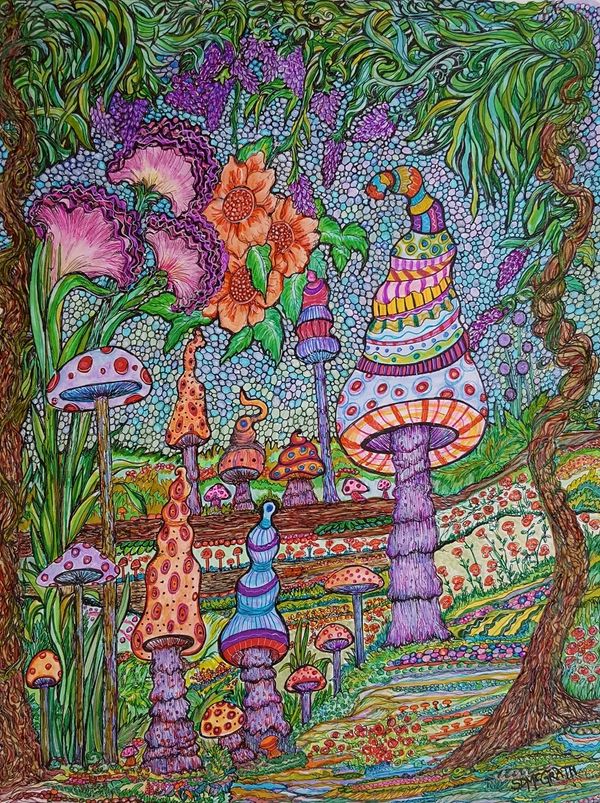 "Mystical Blossoms and Magic Mushrooms" 11x14"