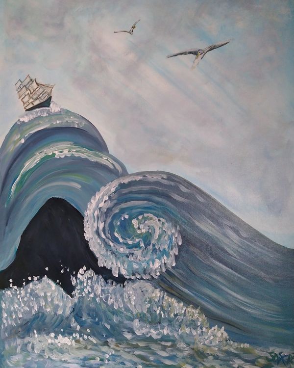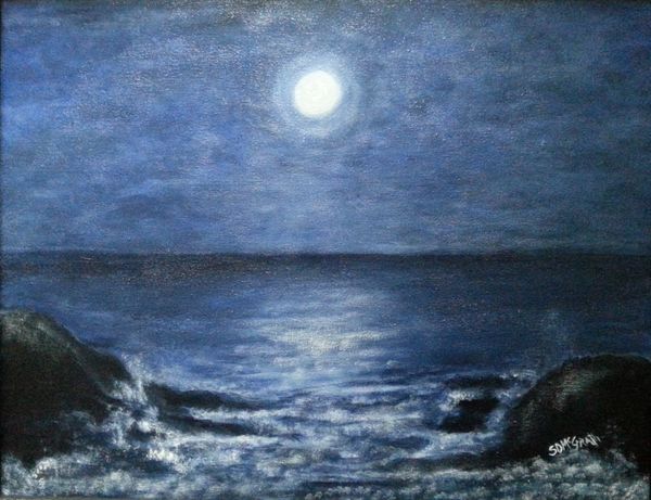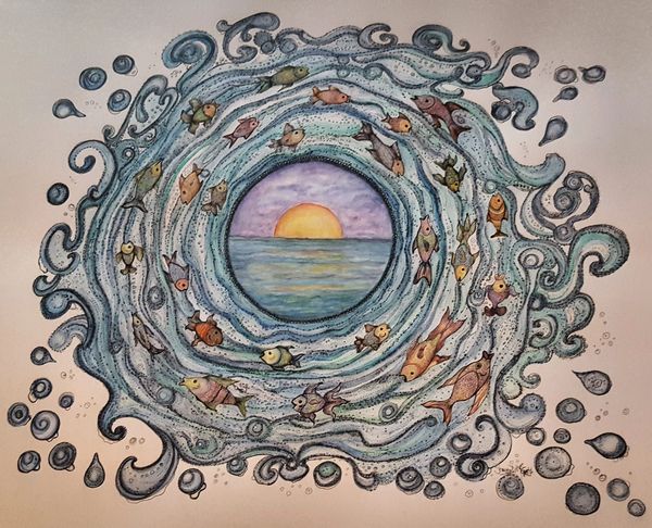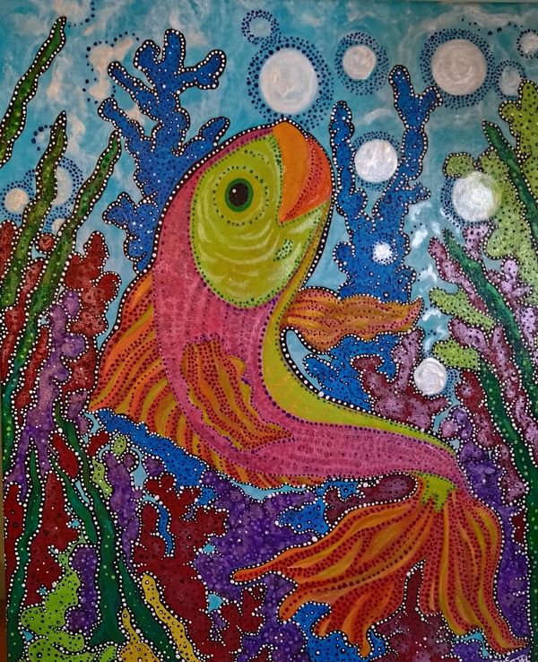 "Somethins' Fishy" 16x20" acrylic on canvas. (metallics)