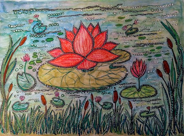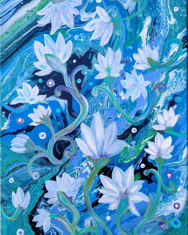 "Lotus Trio" 16x20" acrylic painting on canvas.
