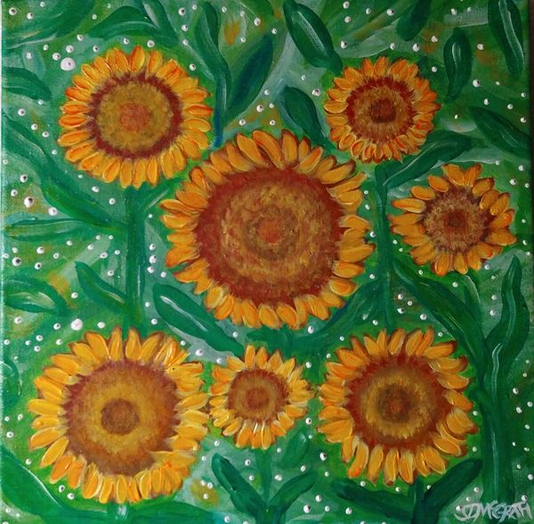 "Daisies" 5x7" acrylic mini painting on canvas.
